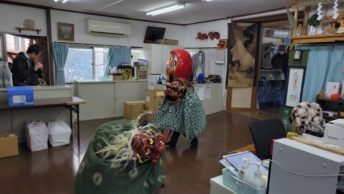 毎年恒例の獅子舞による邪気払いです。